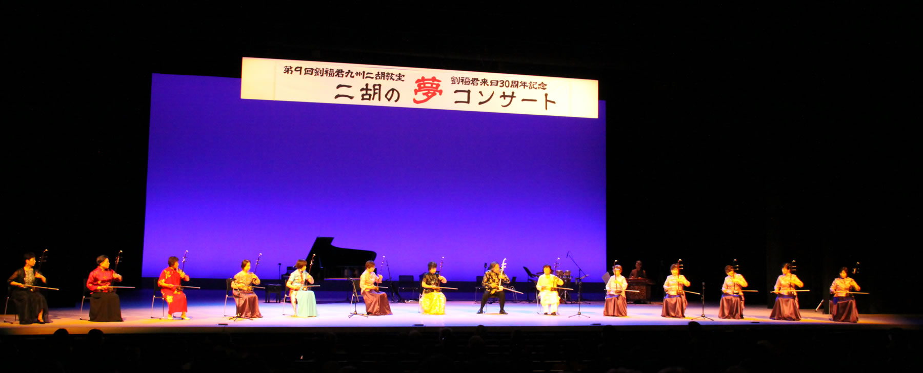 生徒一人ひとりの進み方に合わせてカリキュラムは進みます。3ヵ月ほどで簡単な曲が弾けるようになります。教材は劉福君先生と上海音楽院の王永徳教授のオリジナルテキストを使用します。それに加えて最近の流行の曲を取り入れながら色々なジャンルの曲を楽しくレッスンできます。この教室では、ニ年に一度全県の生徒たちが集う「劉福君九州二胡教室 生徒たち二胡の夢コンサート」や「中国伝統楽器二胡(ソロ)演奏会」を開催しています。コンサートに参加することで、スキルが上達し演奏する楽しさや喜びを体験できます。また二胡愛好者との交流など、二胡で潤いのある日常を送ることができるでしょう。様々な職業・年齢の方にあわせてレッスンのスケジュールを組み合わせできます。個人のレッスンやグループのレッスンはご希望に応じて選択できます。
