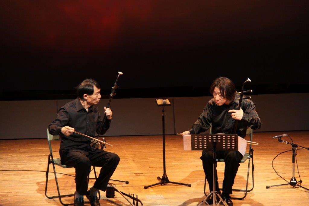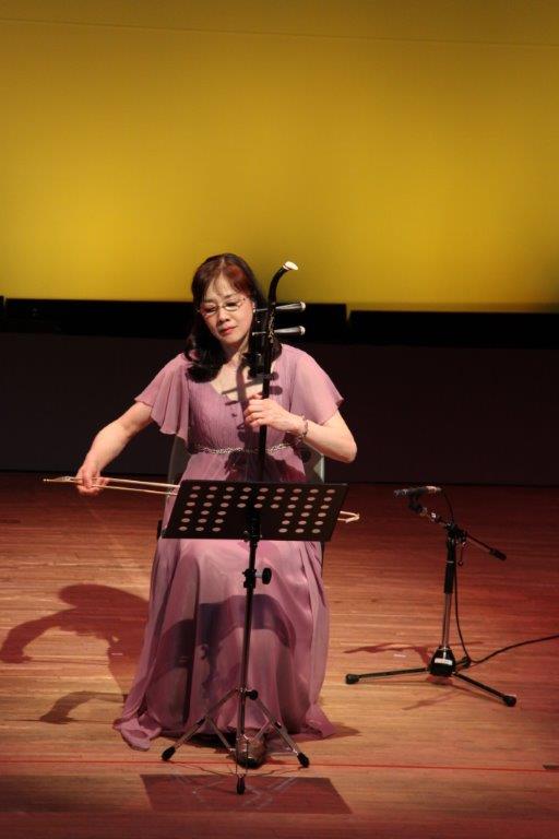 コンサートには、27日と28日に熊本市と福岡市で行われた二胡検定試験の成績優秀者たちが出演し、それぞれ試験の課題として練習を積んだ曲の数々を演奏した。審査に当たった上海音楽学院の王永徳教授と音楽教室主宰の劉福君先生の演奏や、親子による共演も披露された。