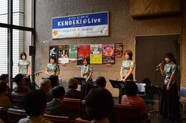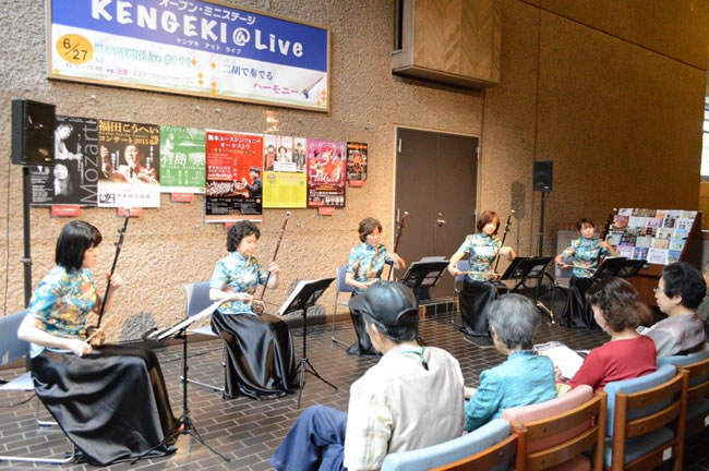 今回、私たちは、『KENGEKI@Live』に出演させていただきました。このイベントは、舞台芸術活動を行っているプロやアマチュアに発表の場を提供してくださる事業で、毎月1回ミニライブが開催されています。このライは今回111回目の開催だそうですが、二胡は初ライブとのことでした。