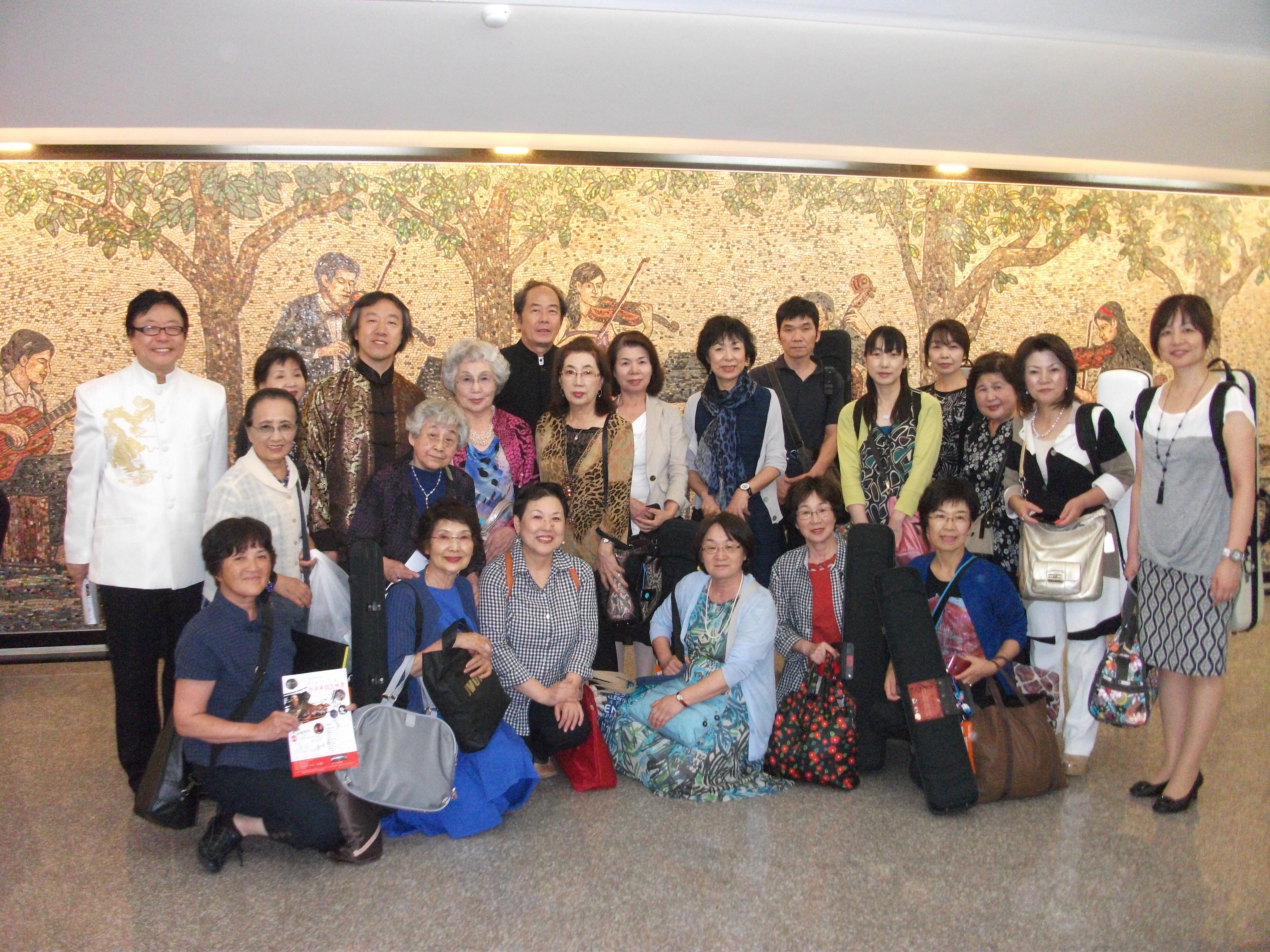 雲ひとつない晴天の9月11日、劉先生をはじめ九州各県の生徒の皆さんとご家族、昨年上海でも共演してくださった三線の井上哲郎先生の22名が福岡空港に集合し、3泊4日の台湾桃園國楽節演奏ツアーへ出発しました。