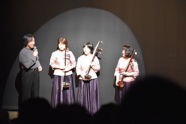 一部は「蘇州夜曲」に始まり、劉先生が舞台下手から演奏しながら登場。大きな拍手がありました。「秋のメドレー」「流水如情」「草原情」「島の風」「陜北抒懐」の曲が続きます。先生の素晴らしい演奏と親しみのある話術に、会場の皆さんの心は引き寄せられたことと思います。
