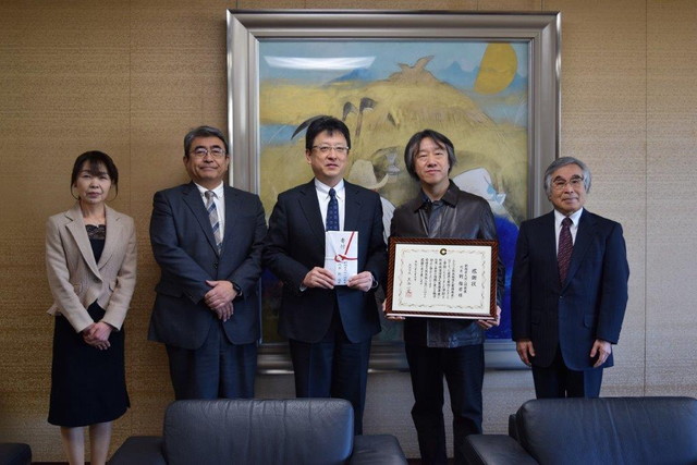 令和2年3月6日、劉福君先生と熊本交響楽団様から団員代表の山﨑崇伸様と常任理事運営委員長の梅田雄介様が熊本市役所を訪問され、大西一史熊本市長に寄付金が贈呈されましたことをここにご報告いたします。