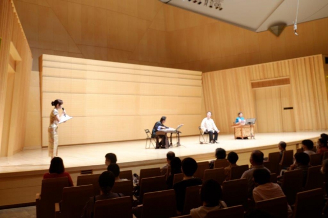 第二部は、中国南部地方の名曲を中心に演奏され、「瑶族舞曲」、「茉莉花」の演奏から始まり、先生方の紹介、また先生方にそれぞれの弦楽器の紹介をしていただきました。