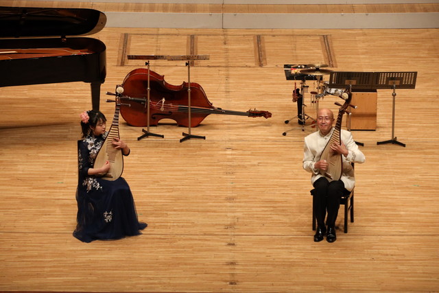 最初に演奏していただいた葉衛陽さんとさくらさん親子の琵琶二重奏「龍船」は、端午の節句に中国各地で開催されるドラゴンレースの賑やかな様子を琵琶の様々な技法を駆使して表現され、繊細でハイテンポなリズムも一糸乱れぬ息の合った演奏で本当に素晴らしい演奏でした。