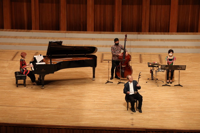 続いて、張濱先生のオリジナル曲「風月同天」は、約1300年前日本の長屋王が唐の高僧鑑真に宛てた漢詩の一節で、コロナ禍の日中両国が互いに贈りあった支援物資にも添えられたそうです。同じ天の下、心を通わせ縁を結ぶ。共に手を携え、この危機を乗り越えたい。風月同天の心が、新しい時代もずっ続きますようにと願いが込められた素晴らしい演奏でした。
