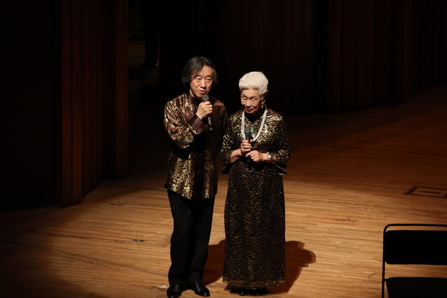コンサートも終盤を迎え、主催者であるNPO法人国際音楽協会理事長の張文乃先生と劉福君九州二胡教室主宰、今回の総合プロデューサー劉福君先生からご来場のお客様に感謝の気持ちを込めてご挨拶がありました。