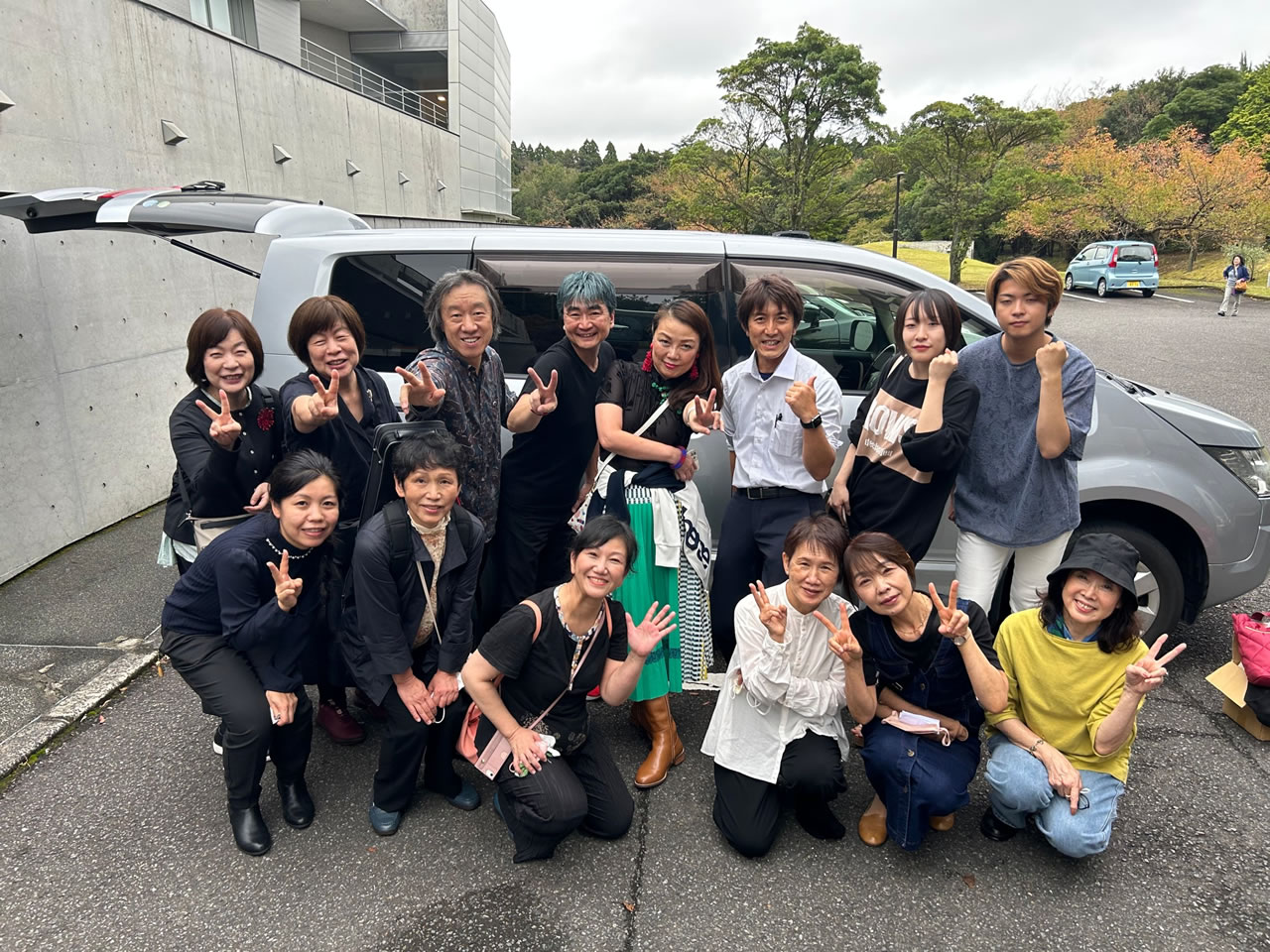 今回、7日に熊本県を出発し、大分県の会場から鹿児島県の会場へと2泊3日のバス移動による演奏の旅を王先生ご夫妻、ウェイウェイ・ウーさんご家族、劉先生、美佳子さん、生徒さんと同行させていただきましたが、本当に楽しく思い出深い旅となりました。何よりも皆さんが明るく、温かく、優しく接してくださり感激しました。言葉が通じなくても心で感じ、伝わってくるものがありました。時にはジェスチャーで伝えたり笑顔の絶えない3日間でした。