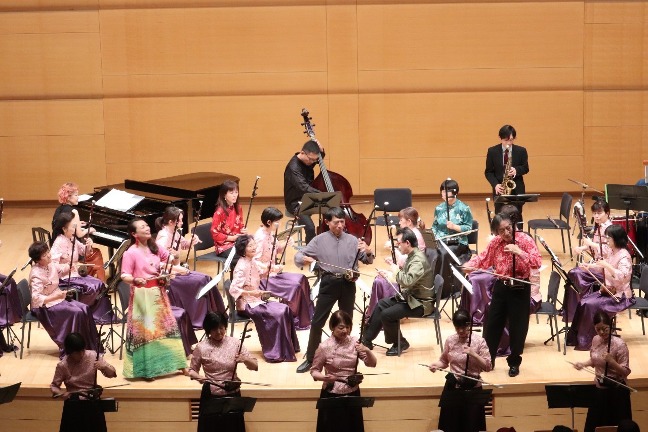 昨年の日中国交正常化50周年記念「平和の祭典」に続き、今年も日中交流の大切な節目を迎え、両国の友好と平和を願って、今回はゲストに中国上海から上海音楽学院の著名な教育家で二胡演奏家の王永徳先生と、1991年に来日され全国でご活躍の二胡演奏家ウェイウェイ・ウーさんをお迎えして、華やかに二胡の魅力と素晴らしい演奏が披露されました。