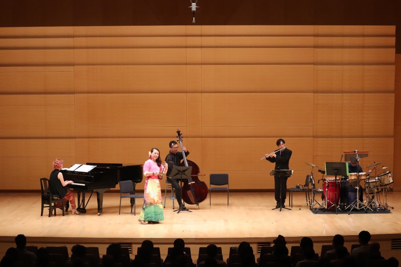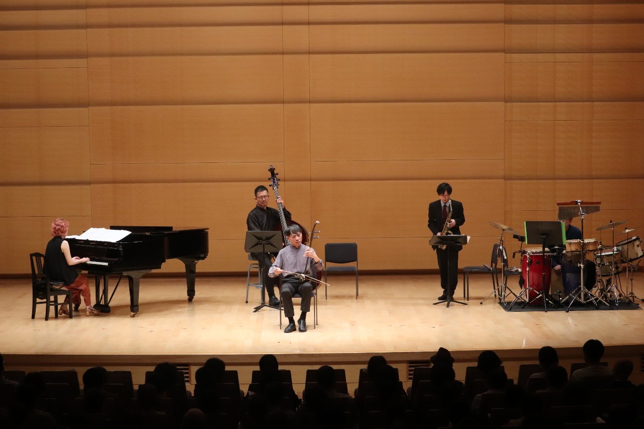 王先生は、ユーモアを交えながら笑顔で自己紹介をされ、日中の友好と平和の大切さ、そして二胡は健康にいいので皆さん二胡を好きになってくださいと述べられました。会場は、温かな雰囲気と優しさに包まれ拍手が湧き起こる中、劉先生の作品「再会」が王先生、ウェイウェイ・ウーさん、劉先生、美佳子さんの共演で演奏されました。皆さんがそれぞれに心待ちにしていた再会、コロナ禍で経験した様々な激動の感情が見事に表現された演奏でした。アンコールには「ふるさと」が演奏され、7日、9日と両日にわたって開催された記念コンサートは、お客様の感動が伝わってくるような熱い拍手が送られる中終演となりました。